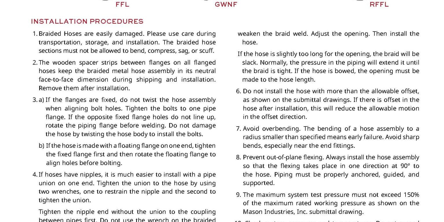8.3 Stainless Steel and Bronze Braided Hoses - Installation and Maintenance Instructions Attached Files FileAction8.3 Stainless Steel and Bronze Braided Hoses - Installation and Maintenance Instructions.pdfDownload Download Version Download 9 File Size 611.40 KB File Count 1 Create Date October 23, 2023 Last Updated October 30, 2023