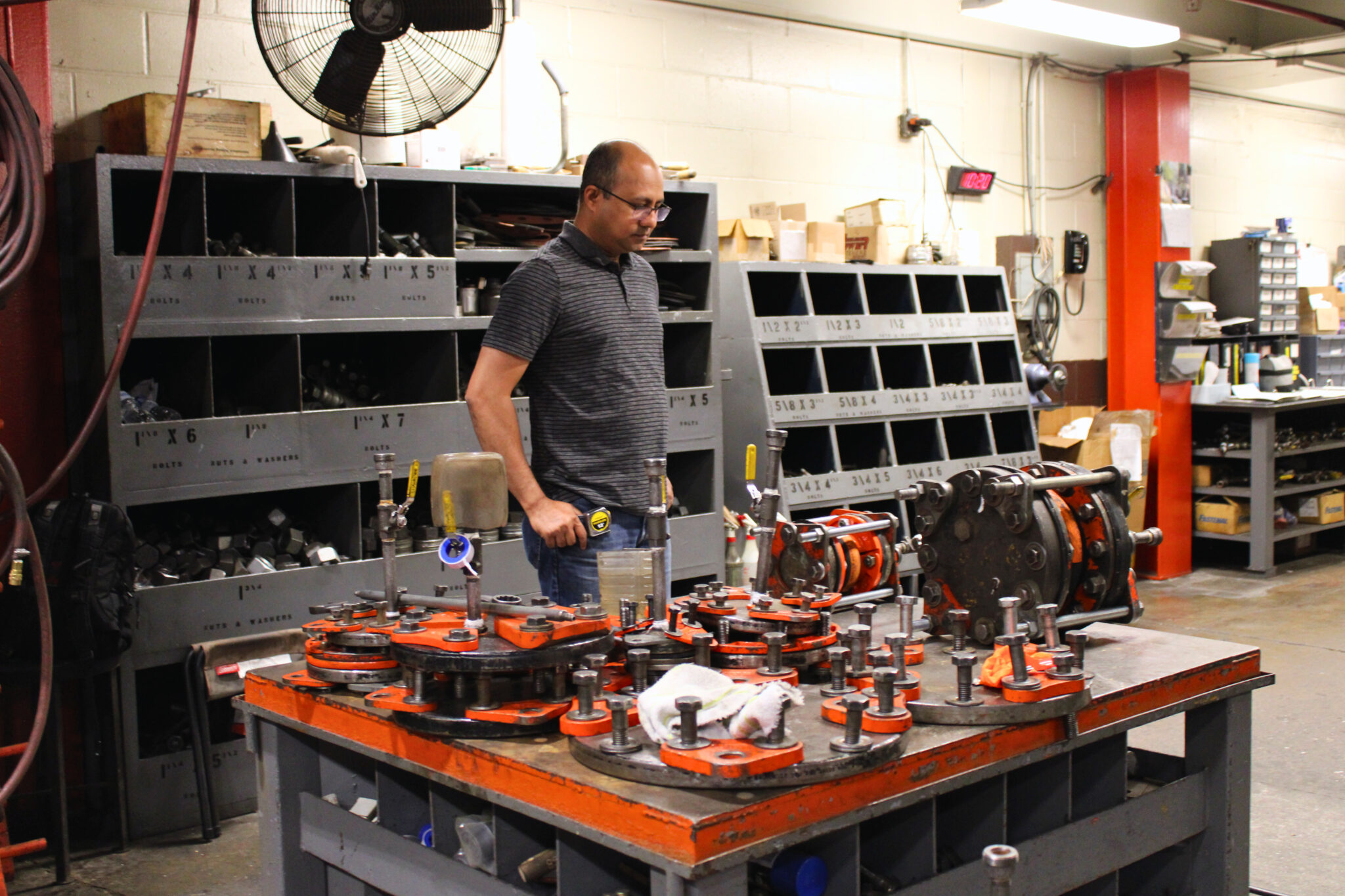 Our engineer TM is photographed preparing to pressure test a shipment of flanges. Each product has a specific rated pressure and test pressure. This order includes an FCR 500 Reducer that is rated at...